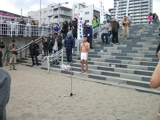 熱海市成人式記念第66回寒中水泳大会を開催しました。 遠くは富山県から、8歳から69歳までの55人が参加しました。 選手宣誓は小嵐中学校1年の村松奈央さんが行いました。 期日 平成24年1月8日 会場 熱海サンビーチ 天気 晴れ 気温 11℃ 水温 15℃ 最高齢者 法月鶴夫さん 69歳 最年少者 杉本萌香さん、清水堅介さん、山田夏妃さん 8歳 最遠隔地 加藤幸治さん 富山県 選手宣誓 村松奈央さん(小嵐中学校1年)